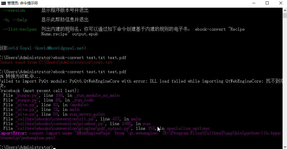 将打包版解压到winserver2016我的服务器上后,在cmd里运行的engineercms提示仍然说path路径里没有找到ebook-convert文件。
